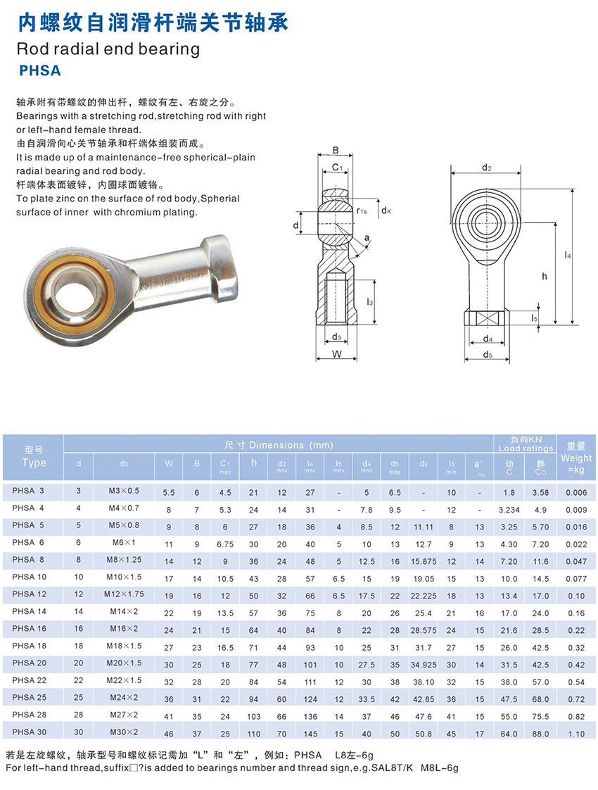 • 產(chǎn)品描述:內(nèi)螺紋自潤滑桿端關(guān)節(jié)軸承