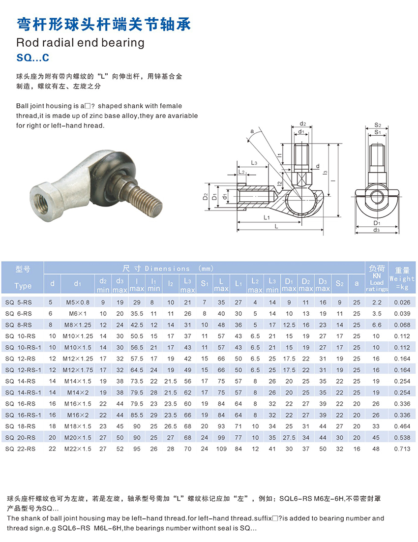 • 產(chǎn)品描述:彎桿形球頭桿端關(guān)節(jié)軸承